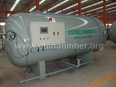 公司是一家专业从事木材防护(防腐、改性、染色)成套设备设计、制造、安装、修理,D1、D2类压力容器——木材处理设备的专业制造厂家。设计制造的木材防腐设备、木材阻燃设备规格种类齐全,可满足不同用户的各种需求。公司资质齐全,设备先进,技术力量雄厚,检测手段齐全,长期从事一、二类压力容器的设计研发和生产制造,可根据用户的需求提供经济的设备设计、防腐(阻燃)设备厂区设计、设备环保设计和安全设计。 公司主导产品:木材防腐罐,木材染色罐,木材蒸煮罐,木材改性罐,木材脱脂罐,木材真空高压浸渍罐,木材满细胞浸渍罐,木材阻燃罐,木材杀菌罐,木材油杆罐,竹木炭化炉,木材深度碳化炉,木材真空干燥设备等成套设备。木材蒸煮工艺 蒸煮的目的是为了软化木材,增加木材的可塑性和含水率,以减小刨切时的切削阻力,并除去一部分木材中的油脂及单宁等浸提物。 一般的蒸煮都采用水煮的方式.蒸煮的温度及时间要根据树种及木材的硬度,刨切薄木的厚度进行控制,硬度大的则温度较高,薄木厚则蒸煮时间较长。该设备是我公司根据用户要求进行设计、制造的。其使用目的是:木材在该蒸煮罐中通过蒸汽进行蒸煮,以达到木材加工、使用之要求。木材蒸煮设备规格型号木材蒸煮罐的内径长度根据客户木材处理量及处理木材规格确定,常规型号:DN1200型,1500型,1700型,1800型,2000型,长度一般4m,6m,8m,10m等,根据木材容积确定,也可根据用户要求定制,最大限度的满足不同产品的需求。 木材蒸煮设备的使用 1、设备使用时,首先打开设备两侧门盖,将物料(木料)推入设备内摆放好,然后关闭门盖,拧紧螺栓; 2、打开蒸汽阀门,向设备内通入蒸汽,对物料进行蒸煮,蒸煮时间根据物料具体情况由用户确定; 3、物料蒸煮合格后,必须关闭蒸汽阀门,待设备冷却后再打开门盖;推出物料。