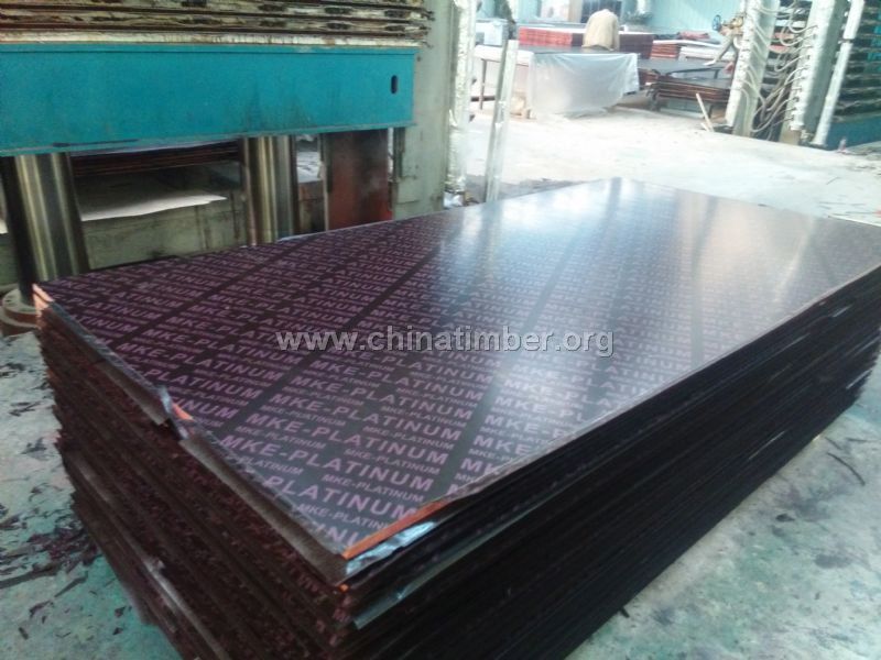 覆膜板具体规格: 膜纸:棕膜;芯板:杨木芯;杂木芯;胶水:三聚氰胺胶(Melamine WBP) 尺寸:1220x2440mm;1250x2500mm 厚度:18mm 性能参数: 胶合强度:1.72 Mpa/ m㎡含水率:9% 静曲强度:36 Mpa/ m㎡弹性模量:5017 Mpa/ m㎡表面耐磨:0.04 g/100r 模板质量标准 :序号 项目 产品标准 1 板边缺损 无 2 开胶、断裂、起层 无 3 长度公差 ± 3mm 4 厚度公差 0.5mm 5 对角线公差 ±1mm 6 翘曲度 不超过0.05% 7 表面凹陷、压痕、鼓包 无(允许个别轻微压痕) 8 表面修补 无 9 表面划痕、沟通、焦瘤,毛刺 无(允许个别轻微压痕) 10 覆膜纸开胶、破损、缺边 无 11 变色 无 12 表板拼接离缝 无 13 表板叠层 无 14 补片、补条 无 15 含水率 6 ~10% 16 胶合强度 ≥0.8 产品特点介绍: 1. 选材--整板整芯,层次分明,二次成型,出口质量,全部采用整芯进行生产,每张单板使用前都经过挑选和修补,二次成型,胶合强度好,不开胶、不断裂、防水、防腐、使用次数多等优点,板面平整度非常好,充分保证了使用次数。 2. 表面光滑,平整度好,无碳化 ,可按客户要求印logo.表面平整光滑、强度高、省工、省料、可达到清水混凝土模板的要求,脱膜后无需清洁模板表面,从而节省大量人工,模板平整度可控制在0.3mm以内,厚薄均匀,厚度可控制在±0.5mm以内,比木胶板节约2/3的铁钉。 3. 胶合强度高,采用三聚氰胺防水胶和酚醛胶进行生产,本公司自己配方生产的胶水,胶合强度强,可反复多次使用 4. 耐水性好,韧性强,长期浸水不分层,吸水膨胀率小于0.06%,可在-30℃_+60℃范围内正常使用 5. 可塑性强. 能根据设计和构件尺寸要求,加工制作不同形状和不同规格的模板,有弧度构件模板制作更为简单,模板可钻钉、锯、刨等具有与木模板一样的可加工性,现场拼接简单方便。