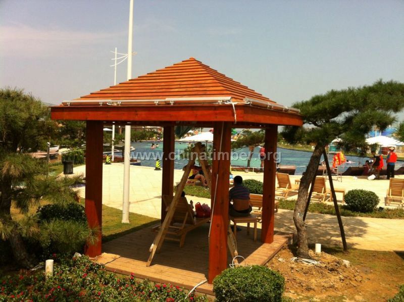 防腐木凉亭可采用樟子松、美国南方松、菠萝格等防腐木材料。构件包括:柱、穿方、斜梁、童心柱、屋面成品板、地面成品板、挂落等几部分。成品屋面板由底板、防水层、搭接板三层组成。 我公司生产的凉亭构件在机械化精确加工中完成下料,打榫。工厂式流水线生产凉亭,每一个部件,每一道工序都经过木工师傅的精雕细琢。 凉亭的颜色可由客户自由选择。凉亭选购注意事项其一看凉亭的外观。优质凉亭做工精良,雕刻精细有神,纯手工雕刻并非电脑雕刻。连接、镶嵌处是否有空隙。无论是柱子还是护栏、桌椅等手可触摸地方,都没有任何刺手地方。其二看凉亭的选材。优质凉亭大多选用香杉杉木,木纹清晰。香杉木被誉为“木料中的天然防腐木”好处:①天然的原木香味,香杉木中所含的香杉木醇能杀死空气中的细菌、可抑制人体病原菌,对各种皮肤炎症有抑制作用;②对人体有消除疲劳,舒解压力的保健作用!相对于油漆家具更显环保,而且还带有一种特殊香气。③香杉木含有“杉脑”能抗虫耐腐。。而劣质凉亭为降低成本,往往采用木质松散的杂木,经过处理后表面是看不出什么区别,因此顾客在挑选时,要向促销员仔细咨询。其三看凉亭的顶部。优质的凉亭顶部是有三层设计,内层为一层碳化木,中间层为防水板,外层是碳化木瓦片,一般采用的是琉璃瓦,瓦片沟槽具有排水功能,三层设计不易漏水,可以放心置于室外。亭子内灯的线路都是出厂前布好的,亭子葫芦顶四根米字形横梁里面有开槽,葫芦顶里面自带有电线。其四看款式尺寸。凉亭大致分四角、六角、八角、双层、三层、异型等几种,建议消费者在购买时提前看好款式,量好具体尺寸,选好合适的款式,建议打地基,因为常规的凉亭的重量一般都有400多Kg,考虑到长期的接触受力是否会导致地面变形下陷,使凉亭不平。其五看凉亭的制作工序。当前市面上销售的凉亭,凉亭的制作工艺都各有不同,通常情况下,凉亭经过了药物浸泡、高温蒸煮、烘烤、防腐、碳化等39道工序......别质疑,这并不是在说食物的烹饪技法,而是一位用碳化木做凉亭的家具店店主向小编解释家具特殊纹路背后的制作工艺。自然、环保、安全,也更适合家庭使用。 3防腐木凉亭材质现在国内常见的防腐木主要有两种材质:俄罗斯樟子松和北欧赤松。俄罗斯樟子松材质防腐木主要是进口原木在国内做的防腐木处理,多为CCA药剂处理。北欧赤松材质防腐木是由国外做好防腐处理,进口到国内直接销售的防腐木材,现在均为ACQ药剂处理,且通常被成为“芬兰木”。由于国内防腐木最早是由芬兰进口过来的,人们习惯于把防腐木称为芬兰木,其实这是不对的,很容易让不懂防腐木的人误解。