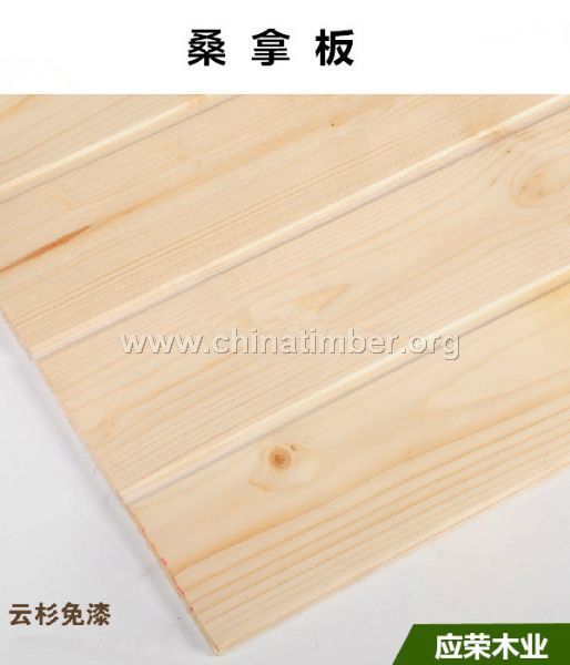 桑拿板桑拿板是用于卫生间的专用木板一般选材于进口松木类和南洋硬木,经过防水、防腐等特殊处理,不仅环保而且不怕水泡,更不必担心会发霉、腐烂。桑拿板的施工工艺是我国不允许的,如果仅供室内用,好像不太美观,室外上倒是可以打地龙骨,用海螺丝固定。如果也用木桑拿板做踢脚,引入是否美观,这是个问题,板材的质量不一样,价格也会不一样。其中“桑拿板”的技术最为成熟,两片之间以插接式连接,如果用在卫生间吊顶位置,需要刷两遍哑光清漆防潮。桑拿板是经过高温脱脂处理,能耐高温,不易变形。桑拿板也可用在卫生间吊顶用,安装好后需要油漆才能防水防腐。桑拿板主要板材有杉木、樟松、白松、红云杉、铁杉、香柏木等。