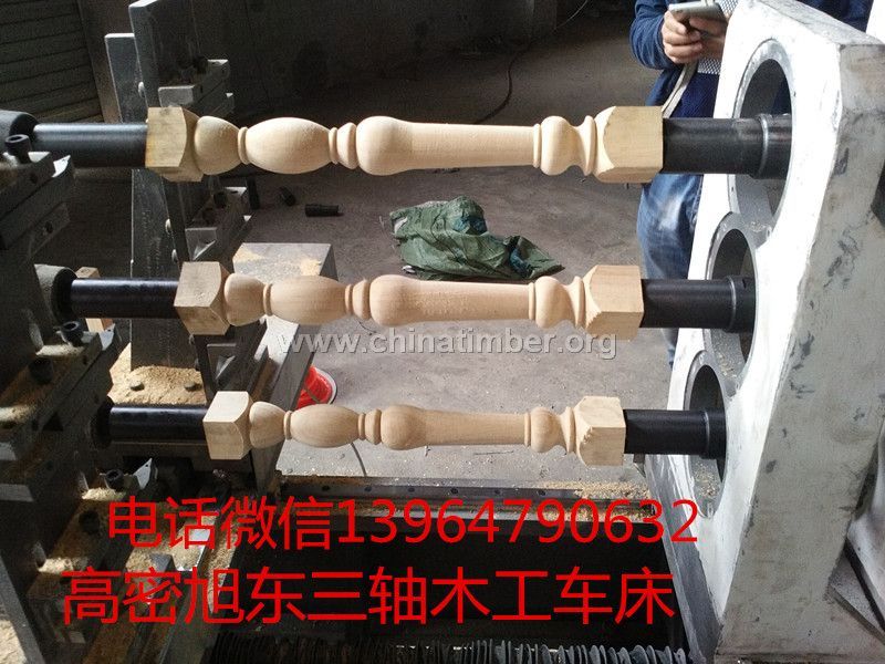 数控木工车床定义:数控木工车床是通过数控技术及其他机械技术研制而成,可以加工出复杂形状的回转体木制品或木质半成品的木工机械设备。是根据木工行业要求、针对木制品加工业的特点、结合木制品业员工操作习惯,通过数控技术控制机械动作,可以加工出圆柱形、圆锥形、弧形、球形等复杂形状的回转体的木制品或木质半成品。特别适用于中小型木业企业的批量生产,可随时灵活设置形状,迅速改变加工样式。 主要特性: ◆动力部分:采用变频调速系统,可随时调整转动速度,解决木料振动问题。 ◆主轴部分:分为单轴类和双轴,单轴可加装卡盘,双轴可同时加工2根。 ◆执行部分:采用高精度步进电机驱动,通过程序计算,确保加工尺寸的准确性! ◆进给部分:采用优质直线滑轨和精密滚丝珠杠转动,有效控制直线误差。汉字化数控操作系统的特点: ◆国内首创,属本公司自主完成程序开发,对其工作稳定性及售后服务、安装调配均有可靠保障。 ◆采用高可靠性能数控模块,编程和操作简单可靠。 ◆操作界面简洁友好,采用全汉字提示和尺寸直接输入的简便设置方法。 ◆零件程序键盘编辑,可存储200多个零件程序,支持U盘扩展。 ◆易学易用,小学文化程度也可学会编程和操作。加工范围:各种楼梯立柱、罗马柱、将军柱、桌椅推、脸盆架、木花瓶、木柱台、棒球棍、车木家具、儿童床立柱等的圆柱型工件的加工等多种车木工艺品。数控木工车库是通过数控技术及机械技术结合研制而成,是可以加工出复杂形状的回转体木制品或木质半成品的木工机械设备,是根据木制品行业要求,针对木制品行业的加工特点,结合木制品业人员的操作习惯,自主研发设计的专利产品,通过数控技术控制机械动作,可以加工出圆柱形,圆锥形,弧形,球形等复杂形状。同时可以在产品上面铣线,搂麻花。是目前国内市场上最先进的一款多功能数控木工车床。特别适用于中小型木制品企业的批量生产。设备的主要特点:主控部分:采用高可靠性数控模块,由本公司自主完成程序开发,对其工作稳定性及售后服务,安装调配均有可靠保障。操作系统:操作界面简洁友好,采用全汉字提示和尺寸直接输入的简便设置方法。执行部分:采用高精度步进电机驱动,通过程序计算确保加工尺寸的准确性。进给部分:采用优质直线滑轨结合精密滚珠丝杠传动,有效控制直线误差。动力部分:采用变频调速系统,可通过调整转动速度解决木料颤振问题。主轴部分:双轴,可同时加工两根工件,亦可单轴加工大直径工件。辅助部分:床身结构稳固,振动小不易变形。附件配置:可选配电动刀台,可加装粗车刀,细车刀,左端面刀,右端面刀,可以自动换刀等,可配置卡盘,可加工圆盘类木制品。设备免费维修一年,客户购机后公司免费派技术员上门安装调试。数控木工车床定义: