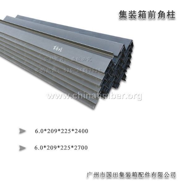 集装箱前角柱焊接在上下角件之间,每个集装箱用2根以支撑箱体,联接前端板和侧板。角柱钢板厚度为6.0mm,与地面接触的边均为70mm,在向上90度折弯的左边宽50mm, 右边宽为40mm,在向上90度折弯宽为175mm,右边是159mm,每个折弯处的圆弧为R9,材料尺寸为6.0*528*2400mm(此尺寸是没有折弯前的下料尺寸)。