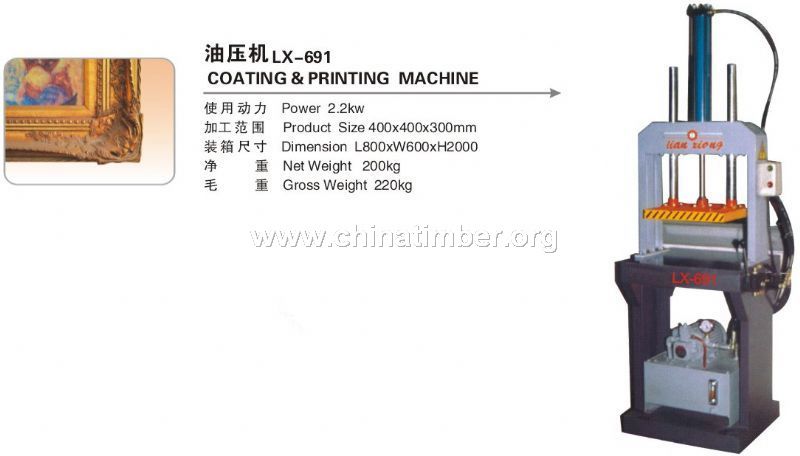 一、油压机的用途 油压机把专业针对画框大角花压印用机械。 二、油压机的技术规格 1、使用动力:2.2kw 2、加工范围:400*400*300mm 3、装箱尺寸:L800*W600*H2000 4、净重:200KG 5、毛重:220KG