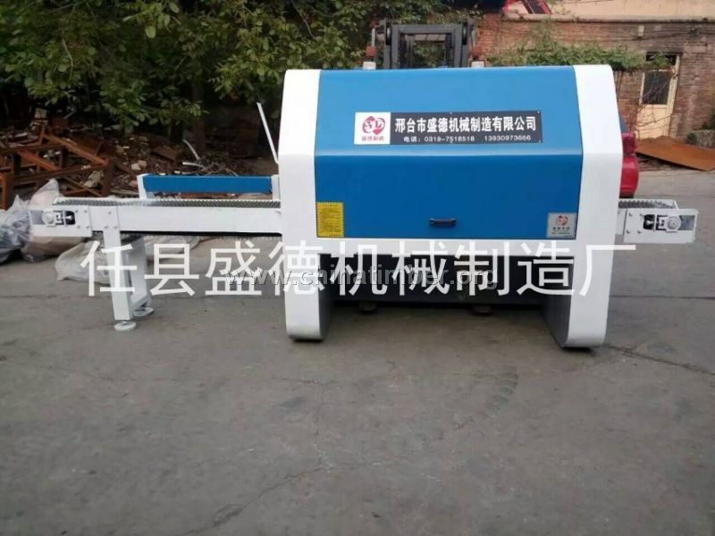 链条自动圆木多片锯 大型圆木/方木多片锯 不烧锯片不卡料 链条自动圆木多片锯可将原木或木板纵切成木片或木条。并且整个操作过程中只需要人工参与送料,机械全程自动切料,高精度锯切,可按需要调整锯切尺寸,并能按所调定的尺寸一次锯切成方木,条木或板材成品表面光滑,无需再刨。木工多片锯具有自动化程度高,能稳定,生产效率高的特点,并且在工作效率上是普通带锯机器的五倍,而且在安全上远远超过同类产品。适应国情,按照我国的木材加工类型生产定制,相对于国外的木材,我国的木材纹理较浅,直径不大,但是厚度很大,针对这种特点,在进行设计上加上了三重锯片的设计,这样是为了达到更高的出材率和更好的木材成品质量。链条圆木多片锯具体操作流程 1.多片锯开机前检查对称性检查确保导航片和输送链条的对称,确保送料链条不会跟锯片摩擦,确保插板不会跟导航片摩擦。紧固性检查确保锯片,导航片部件螺母紧固。其他确保锯片,锯齿方向在主轴的运转方向相同。确保各部位传输系统运转正常。确保有足够的水量。 2.操作方法 开机顺序:开启电源---->开启急停开关---->打开水源---->启动主机I---->启动主机II---->启动导航---->送料启动 送料流程:将圆木放置在送料链条中间,并增加适当压力。木料分片出口时,先取掉两边的板材,再取中间的木料。 卡料处理:若出现卡料,应立即关闭电源,待机器完全停止后,提起防弹装置,按下点动退料按钮,退出木料。 清理: 及时清理导航片,叉板周边的碎边和锯屑。