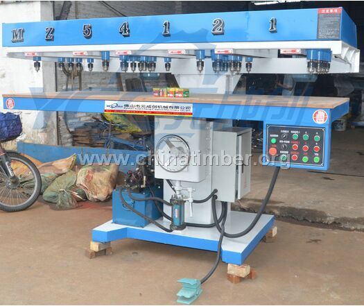MZ54121技术参数 工作台尺寸:2100x900mm 最大加工深度:100mm 最大钻孔直接:13mm 转轴数:21pcs(可加减) 钻速:3800r/min 总功率:3kw*3 1.5kw*1 21轴群钻 多头打孔机 液压升降台面 钻孔间距可调 多孔同时钻