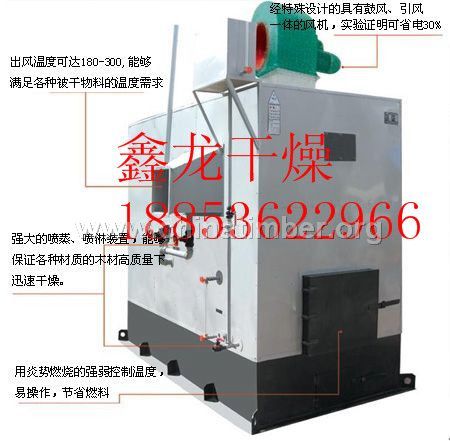GHM系列木材专用热风(蒸汽)烘干炉具有以下特点: 1.设备上配有蒸汽发生装置(可产生大量的常压蒸汽)、助氧风阀、回风阀、排潮系统等。 2.投资费用低,设计巧妙,使一台风机实现了助燃、鼓风、回风于一体。 3.运行费用低,燃料广泛,如:树皮、刨花、锯末、煤等可燃物,亦可配备燃烧器,使用柴油、天然气等燃料。 4.热风清洁、提温迅速。出材率高,干燥均匀,减少了木材干燥过程中出现的内裂、端裂、表裂、变形等缺陷,同时可将寄生在木材内的所有蛀虫及虫卵全部除死. 5.热效率高,避免二次换热造成的热损失,并配备循环回收系统,充分利用热能。 6.操作安全,设备为无压锅炉。 7.冬天停炉时,不会出现炉体和管道冻裂的情况。 8.成熟的干燥工艺,可根据客户需求灵活调节。 可根据客户需要提供木材干燥整体布局规划、木材烘干箱设计制作、旧窑改造、木材干燥工艺指导等服务。 鑫龙全体员工热忱欢迎新老客户光临考察指导!