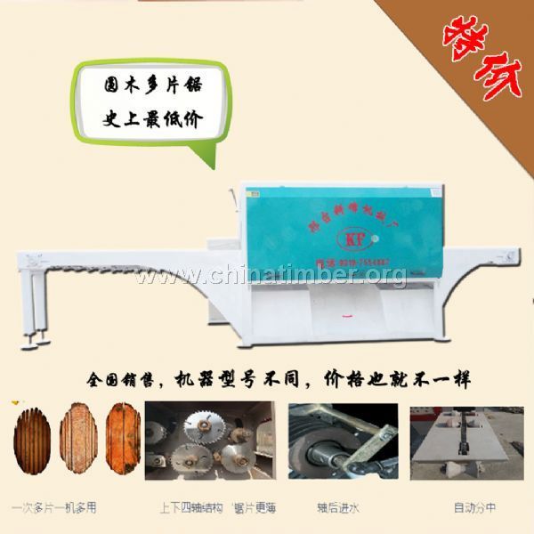 产品说明:一根杉木原木通过进料口,一会儿,五六片厚度不等的板材就从出料口送出。圆木多片锯被认为具有送料顺畅、加工精细、不烧锯片、高工效、低耗材、安全环保等优点。这是一个高效、高精度节约资源的木材锯切技术研究及设备研发项目,经过国内技术人员多年潜心研发,是完全拥有自主知识产权的高科技成果。一台圆木多片锯就能代替四台传统带锯,填补了我国木材加工行业的这一空白.该设备采用了全新结构和多项新技术,经有关部门科技查新,属于国内首创,技术含量达到国际先进水平。针对南方速生林原木口径多为20厘米的特点,这一设备可对该口径以内的原木、半原木、方型木料等进行锯切。说它高效、高精度,是因为它可以将一根原木一次锯切成多片预调规格板材,自动化程度高。