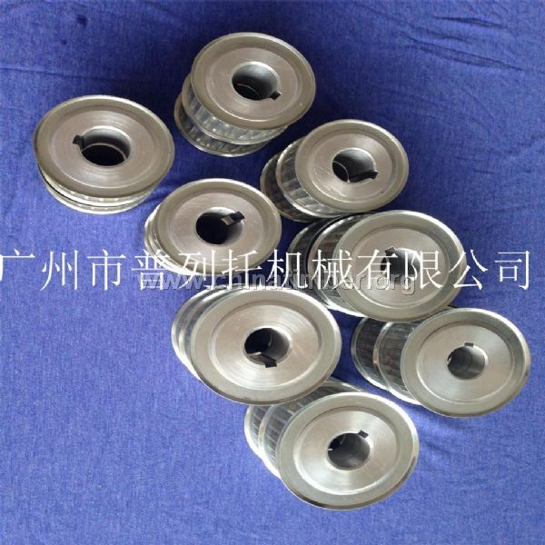 同步轮一般由材料45#钢,铝合金,铜,尼龙等,材料加工而成.广泛用于机床﹑纺织﹑印刷﹑食品包装﹑电线电缆﹑仪器仪表﹑石油化工﹑烟草﹑通讯等各行业的新型机械带传动中。 同步轮与同步带配合使用! 同步轮传动是由一条内周表面设有等间距齿的环形皮带和具有相应齿的带轮所组成,运行时,带齿与带轮的齿槽相啮合传递运动和动力,它是综合了皮带传动、链传动齿轮传动各自优点的新型带传动。 同步轮要求安装调整方便快捷,表面防锈性能好,经盐雾发黑防锈氧化处理;专业生产即购即装。欢迎各界就工业皮带及其传动配件来电,来函垂询。我们将竭诚为您提供高品质的产品及优质的售前,售中,售后服务,公司本着专业,诚信,快速,创新,服务,经济的宗旨竭诚为各界提供专业的服务。