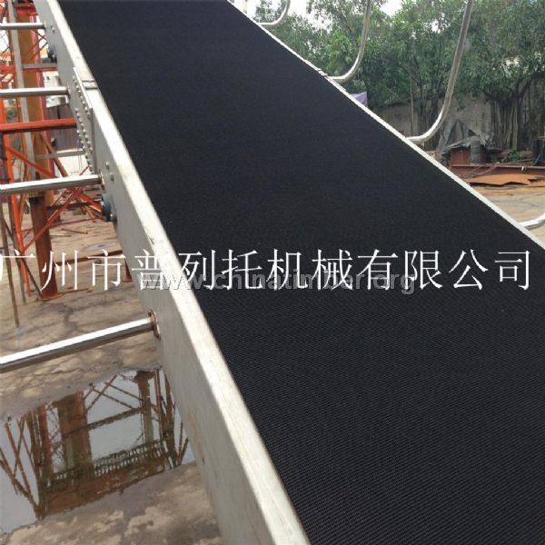 输送带是用于皮带输送带中起承载和运送物料作用的橡胶与纤维、金属复合制品,或者是塑料和织物复合的制品。输送带广泛应用于电子,食品,纸品,水泥、焦化、冶金、化工、钢铁等行业中。输送带能连续化、高效率、大倾角运输,输送带操作安全,输送带使用简便,维修容易,运费低廉,并能缩短运输距离,降低工程造价,节省人力物力。 输送带采用多层挂胶棉帆布作骨架,表面覆盖性能良好的橡胶材料,经硫化而制成。输送带系列产品有普通棉帆布、尼龙(NN),聚酯(EP),大倾角(波状挡边)、裙边隔板、环形、花纹{由于运送物料不同和输送倾角大小不同,要求花纹形状和高度也不同。常用的花纹输送带品种如:人字形花纹输送带(人字输送带包括上凸、下凹人字)、八字形花纹、鱼骨花纹、U形花纹、圆柱形花纹、麻点花纹输送带等,草型花纹输送带,或根据用户要求设计}、止水带、PVC或者PVG整芯阻燃带等;并能提供各种特殊性能的输送带(一般阻燃、耐热、耐灼烧、高耐磨、耐酸、耐碱、耐寒、耐油、耐高温、高强力及食品、特氟龙、不锈钢、链条、输送网带等)。按材质可分为PVC、PU、聚乙烯、塑料链板、模块网、聚丙烯、尼龙、铁氟龙、不锈钢输送带等。 食品输送带主要是运送一些人们生活中吃的东西,涉及到我们的健康问题。而绿色输送带主要是输送带的材料是可循环的,本质上与食品输送带是不同的。不仅有可以回收的作用,而且在使用完后当你丢弃后,并不会应用多长时间就可以与大自然结合在一起了。他被称为输送带家族的“健康大使”。 ● 输送带绿色为一般用途;白色或透明符合食品卫生标准;黑色和墨绿符合导静电要求,体积电阻≤108Ω㎝; ● 输送带骨架层至少有一到两层纬线带刚性的聚酯丝编织物,特殊要求可采用软性纤维; ● 橡塑耐磨耗度≤0.05cm3/1.61km;聚酯丝编织物抗拉强度≥1250kgf/cm2;拉断伸长率≤20%; ● 输送带宽度超过生产宽度范围,采用冷胶粘合方式; ● 特殊情况接头可采用钢扣连接; 欢迎各界就工业皮带及其传动配件来电,来函垂询。我们将竭诚为您提供高品质的产品及优质的售前,售中,售后服务,公司本着专业,诚信,快速,创新,服务,经济的宗旨竭诚为各界提供专业的服务。