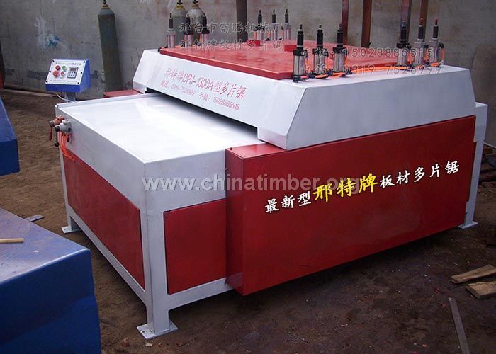 技术参数: 产品型号: DPJ1300A重型板材多片锯  Product name: DJP1300 type high precision heavy plate multi chip saw 最大加工长度: 4000mm(连续进料不限长) Maximum machining length: 4000mm(Continuous feeding is not limited to long) 最短加工长度: 400mm The shortest processing length: 400mm 加工板材宽度: 1300mm-600mm Sheet width: 1300mm-600mm 进料速度: 0-16m(变频器调速) Feed rate: 0-16m(Frequency converter speed regulation) 主电机功率: 18kw Main motor power: 18kw 外观尺寸: 2200mmX1900mmX1200mm Appearance size: 2200mmX1900mmX1200mm 主轴转速: 3100转/分钟 Spindle speed: 3100转/分钟产品介绍: 本厂生产专业生产的,多片锯,板材多片锯,木工多片锯,方木多片锯,新型多片锯适合木材加工厂,包装厂,装修材料厂等,主要加工整张的建筑模板、细木工板,木质地板,石膏板,刨光板,木托盘,胶合板,多层板,保温板等的开条等宽,由于现在工人工资不断上涨,电费不断上涨,成本不断提高,利润越来越小。本产品工作效率高,设计合理,大大降低了电的损耗,实现自动化操作方便,节省操作时间,较宽的板材可以一次性加工多条,速度快,节省人工3倍以上,节电70%,大大提高了生产效率,扩大了利润空间,生产的产品光洁整齐、无压痕,不伤料,提高了市场竞争力。可定做各种多片锯,可帮各单位设计,生产流水线。 The factory specializing in the production of multi chip saw , woodworking sawing Apply to,wood flooring, gypsum board, Wooden pallets, plywood, multilayer board, insulation board and strip width, because now rising wages, rising electricity, rising costs, increasingly small profits. This product has high work efficiency, reasonable design, greatly reduce the loss of power automation, convenient operation, time saving, wide plate can be a one-time processing speed, saving labor, saving 70%, more than 3 times, greatly improving the production efficiency, expand the profit space, products smooth, no indentation, not hurt material, improve market competitiveness. Can be customized to a variety of saws, can help the design production lines.