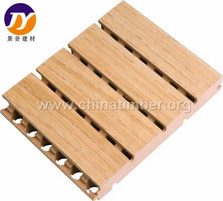 槽木吸音板的产品特点: 1、科技产业——多种材质根据声学原理,合理配合,具有出色的降噪吸音性能,对中、高频吸音效果尤佳。 2、艺术产品——既有天然木质纹理,古朴自然;亦有体现现代节奏的明快亮丽的风格,产品的装饰性极佳,可根据需要饰以天然木纹、图案等多种装饰效果,提供良好的视觉享受。 3、环保产品——所有材料符合国家环保标准,甲醛含量极低,产品还具有天然木质的芳香,公司还可根据客户需要订做E0级零甲醛木质吸声板。 4、安全防火——具有槽木吸音板最高的防火等级B1。这点己通过国家权威部门检测通过。 5、防霉防潮——吸音板的基材全部采用经过特殊处理的高密度防霉防潮板,以确保产品的防霉防潮性能。 6、安装简易——标准化模块设计,采用插槽、龙骨结构,安装简便、快捷。 7、工业生产——改变传统建筑材料粗放型生产,用全自动计算机控制设备,大规模标准化生产,即提高生产能力,也能保证产品质量。 二 槽木吸音板型号 2面1槽:59/5 60/4 3面2槽 40/3 38.5/4 4面3槽:28/4 29/3 6面5槽 18/3 17/4 8面7槽:13/3 14/2 三 槽木吸音板基材普通基材 环保基材 防火B1级基材 防火A级基材三、槽孔吸音板的结构 基 材——景音槽孔吸音板采用高密度的防霉防潮板做成,厚度为15mm或18mm。亦可根据用户的要求使用其他厚度或性能的密度板基材。 饰 面——三聚氰胺饰面,请按公司色卡选择,真木皮饰面,可按客户要求选择木皮及油漆颜色。吸音薄毡——颜色为黑色,粘贴在吸音板背面,具防火吸音性能。板条宽度——128mm或按照客户要求订做。板条长度——最长2440mm或按客户要求订做。允许公差——宽度为0.1MM,长度为2MM。拼 版——板条长边根据实际需要做成90度角的企口和凹口来拼接四 吸音系数 五 安装方法 1、安装前的存放要求存放“景音”木质吸音板的仓库要求密封和防潮,在安装“景音”木质吸音板前,必须先将包装箱打开至少达48小时以上,以便产品达到与安装场所相一致环境特性。 2、安装场所要求安装场所必须干燥并且至少安装前24小时要达到规定的温湿标准,安装场所要求的最低温度为15度,安装后的最大温度变化值要控制在40—60%范围内。 3、墙面用吸音板安装方法(1)、先将轻钢龙骨安装到墙面。(2)、贴墙轻钢龙骨的立面尺寸18X26X3000mm长,分隔间距为60cm。(3)、将尺寸为45X38X5mm的扣片安装在龙骨和吸音板之间。(4)、覆盖吸音板背面的玻璃棉:厚度30—50mm、密度32kg每立方米、宽度与长度为600X1200mm。 4、注意事项(墙面)(1)、龙骨架格栅之间推荐选用的间距为60CM。(2)、多块“景音”木质吸音板在板与板组合安装时,板头与板头之间至少要留出3MM的空隙。(3)、如果吸音板从地面开始按横式安装,则长面的凹口要朝下安装并用扣片锁紧,一块接一块再将其他吸音板安装上去。