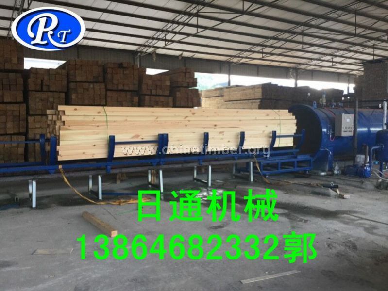 木材处理设备简介日通公司制造的(竹)木材真空加压加温成套处理设备,主要含两大类几十种规格。是按照中国GB150-1998《钢制压力容器》标准进行设计、制造。配套系统以高效率耐用性进行配置,确保十五年以上的使用寿命。产品的每一道工序都必须经过严格检测,出厂必须经过政府质量监督部门严格检测验收,是用户完全可以信赖的产品。日通公司制造的设备不但负责安装、调试、操作人员的培训,而且对您筹建处理厂提供全套解决方案技,以及防腐阻燃木材的生产工艺、质量监控提供全面技术支持。同时提供药剂生产设备和各种药剂配方、生产工艺。设备用途: RT型(竹)木材防腐、阻燃、炭化改性、化学改性、过热真空干燥、脱脂、染色设备机组是用于户外园林、木结构、别墅以及室内装饰的竹、木制品的特殊处理的专用设备。我厂研制的RT型设备几乎能满足所有竹、木材料处理对设备的要求,同时适用于各种防腐剂、阻燃剂、改性剂及各种木材的气相、液相反应等。设备性能:机组采用真空、加压、加热等一系列工艺操作,并把调制成一定浓度的防腐、阻燃、改性药液经过真空、高压、频压注入(竹)木材细胞内部,从而起到防腐、防霉、防蛀、防白蚁及阻燃、改性等效果。该设备目前已经达到国际同类产品的领先水平。设备特点:该设备结构设计紧凑合理,操作简单易学、功能先进、通用性强,木材处理量大,配套设备选用合理,辅助工作时间短效率高,药剂循环使用,生产成本低,且不污染环境。高压设备处理的木材不仅能满足国际行业标准,而且能进行超标准生产,是未来防腐、阻燃、染色的主流设备。设备型号:一种机型是按美国标准制造,以卡箍转动锁紧,密封性能最好。另一种机型是按中国标准制造,以门转动锁紧,密封性能良好。产品服务:售前服务:提供防腐设备选型,筹建策划,提供场地布局图,木工机械选型。售中服务:设备安装,调试,操作培训,生产工艺指导。售后服务:在1年内免费提供产品质保服务,常年提供材料,药剂,以及生产中出现的各种疑难提供技术支援。技术特性:设备压力:-0.1~4.0MPa 真空度:0~-0.095Mpa、设计温度:0~260摄氏度工作介质:水溶性防腐、阻燃、染色剂。工艺:满细胞法,高低频压法,双真空法。年产量:5000立方米~40000立方米 undefined undefined 防腐、阻燃设备(竹)木防腐设备;属于常温真空加压设备,根据树种、药剂和使用环境的不同采取不同的工艺。(竹)木阻燃设备:属于加温真空加压设备,根据树种、药剂和阻燃要求的不同采取不同的工艺。该设备可兼容真空干燥、木材软化、木材熏蒸杀虫。炭化改性设备;(竹)木碳化设备;属于必须报检的高温真空设备,根据树种和碳化要求的不同采取不同的工艺。该设备可兼真空干燥、过热干燥、木材软化、木材熏蒸杀虫。多项功能试验设备多项功能的小型木(竹)材处理机。可进行较广泛的常规蒸汽干燥、高温干燥(过热干燥)、低温干燥、不饱和气相干燥、液相置换干燥、真空干燥等;防腐、阻燃、乙酰化等;增密、増硬、增韧等化学金属改性;碳化、软化、脱脂、脱色、染色、微爆、养生等高温热处理;以及各种化学品气相、液相法反应等实验过程药剂制造设备木材处理药剂制造设备;属于高剪切、降温、增温反应的药剂制造设备,该设备可生产CCA、ACQ、CA、阻燃剂、改性剂等所有木材处理药剂。防腐、阻燃、染色设备使用说明书一,生产工艺程序 1、按工艺生产需要在搅拌罐内配制药液,并把药剂装入储药罐待用 2、按产品规格取材——选材并四面刨光——装入料车——开启罐门——推动移车台与罐内接轨——将料车推至罐内——关闭罐门——真空作业——吸液——补液——加压——频压——卸压——回液——后真空——卸压——开启罐门(待压力卸完后)——出料——检验。二,操作顺序 1、药液配制:由搅拌罐配制药液,再注入贮液罐中,贮液罐的药液依需要加浓或减淡。 2、进料:首先将处理竹、木材装入罐内,然后将罐门合上、关紧。具体操作如下:(1)、首先试合罐门、观察罐门法兰与罐体卡箍圈上下左右两平面是否平行并及时调整;(2)、确认平行后,启动液压系统旋合卡箍圈(注意:一定要使罐门法兰与罐体卡箍圈相吻合,并检查丝杆机构上的行程开关是否完好,才能启动液压站或启动闭门器。 2、真空作业:罐门关好后,打开真空阀门,并关闭其它所有阀门,开始真空作业,并保持真空。 3、加压:真空作业后,利用负压进行吸液,根据不同的材料、标准进行加压、频压,使药剂充分渗入木材细胞内部。 4、排液:卸压作业后,排干药剂。 5、后真空:回液后进行后真空(具体操作同真空操作)三,特别注意事项 1、在工作之前,一定要检查各电器是否完好,各处阀门、压力表、真空表、液位计、各类泵是否正常,损坏的则进行更换。 2、在加热、加压过程中,要逐步加温、加压,并要注意压力变化,不得超过罐内所规定的工作压力。满细胞法:满细胞法又叫全吸收法,它是一种使防腐剂充满木材细胞的防腐工艺方法。通常适用于水溶性防腐剂(如:CCA、ACQ),用该种方法处理木材可以使木材保留最大数量的防腐剂高低频压法:用不断重复的常压和压力周期对木材进行防腐处理的工艺方法叫高低频压法,用这种工艺方法处理木材能使难浸注的木材和湿材得到比满细胞法更优良的防腐效果。通常情况下,木材的