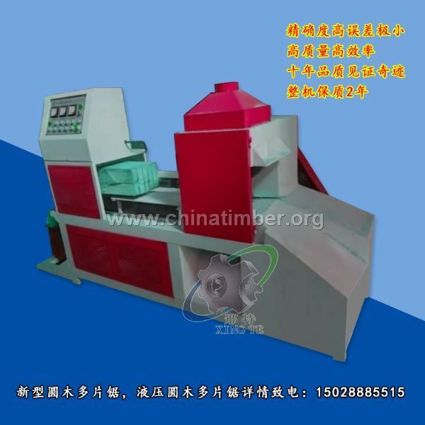 技术参数: 产品型号: YDPJ300D型圆木多片锯 Product name: YDPJ300D type logs multi chip saw 最大加工长度: 2000mm(连续进料不限长) Maximum machining length: 2000mm(Continuous feeding is not limited to long) 最短加工长度: 300mm The shortest processing length: 300mm 加工圆木直径: 300mm The diameter of sawing logs: 300mm 进料速度: 0-9m(变频器调速) Feed rate: 0-9m(Frequency converter speed regulation) 主电机功率: 22kw/2台 Main motor power: 22kw/2台 外观尺寸: 3000mmX1600mmX1200mm Appearance size: 3000mmX1600mmX1200mm 主轴转速: 3100转/分钟 Spindle speed: 3100转/分钟 产品介绍: 本机是一台专业加工规格板材的多片锯机械,采用上滚筒下链条式输送,进料口高度1-30CM之间可以随意调节,加工圆木直径30CM宽,通过宽度可以订做无限宽,加工规格可以随意调节,最薄加工厚度可以达到8MM,切除的板材尺寸标准,误差在0.3MM之内,表面光滑,无需再刨,节省工序。操作简单,普通工人即可操作,加工效率高,平均每小时出成品2方半左右,一台多片锯可以抵四台传统带锯产量,替企业大量节省人工费用,该多片锯只要用于锯切方料,加工成多片规格。上下轴设计,加工口径大。具有锯路小、锯削表面光滑、高出材率。是加工指接板、细木工板、包装板等最理想的木工机械设备。适用于加工实木规格板,木地板,木托盘,木龙骨,建筑模方,实木拼板、指接板等实木加工企业,已成为众多木材加工企业的必备生产设备!本机是一台专业加工规格板材的多片锯机械,采用上下滚筒式输送,进料口高度1-6CM之间可以随意调节,加工宽度20CM宽,通过宽度可以订做无限宽,加工规格可以随意调节,最薄加工厚度可以达到8MM,切除的板材尺寸标准,误差在0.3MM之内,表面光滑,无需再刨,节省工序。操作简单,普通工人即可操作,加工效率高,平均每小时出成品2方半左右,一台多片锯可以抵四台传统带锯产量,替企业大量节省人工费用,该多片锯只要用于锯切方料,加工成多片规格。上下轴设计,加工口径大。具有锯路小、锯削表面光滑、高出材率。是加工指接板、细木工板、包装板等最理想的木工机械设备。适用于加工实木规格板,木地板,木托盘,木龙骨,建筑模方,实木拼板、指接板等实木加工企业,已成为众多木材加工企业的必备生产设备! This machine is a professional processing specification plate multi chip saw machine, the drum under the chain conveyor, between the inlet height of 1-30CM can be adjusted freely, working width 30CM wide width can be customized by infinite wide processing specifications can be adjusted, the thinnest thickness can reach 8MM, plate size standard resection and the error is within the range of 0.3MM, the surface is smooth,ordinary workers to operate, the processing efficiency is high, the average per hour 2 half finished,for a large number of enterprises to save labor cost, as long as the multi chip saw used for cutting materials, processed into multiple specifications. The upper and lower shaft design, machining large diameter. With a small sawing, sawing surface smooth, high rate of material. It is the most ideal woodworking machinery, such as the processing of the connecting plate, the fine wood board and the packaging board. Suitable for processing wood tiles, wood floors, wooden pallets, wooden keel, construction formwork, finger board and other wood processing enterprises, wood board, has become the necessary equipment for many wood processing enterprises! This machine is a professional processing specification plate multi chip saw machine, the upper and lower roller conveyor, between the inlet height of 1-6CM can be adjusted freely, working width 20CM wide width can be customized by infinite wide processing specifications can be adjusted, the thinnest thickness machining can reach 8MM, plate size standard resection and the error is within the range of 0.3MM, the surface is smooth, no plane, save the process. Simple, ordinary workers to operate, the processing efficiency is high, the average per hour 2 half finished, a multi chip saw can reach four Taiwan traditional band production, for a large number of enterprises to save labor cost, as long as the multi chip saw used for cutting materials, processed into multiple specifications. The upper and lower shaft design, machining large diameter. With a small sawing, sawing surface smooth, high rate of material. It is the most ideal woodworking machinery, such as the processing of the connecting plate, the fine wood board and the packaging board. Suitable for processing wood tiles, wood floors, wooden pallets, wooden keel, construction formwork, finger board and other wood processing enterprises, wood board, has become the necessary equipment for many wood processing enterprises!