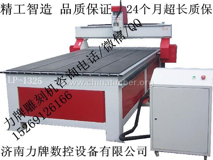 密度板雪弗板木工浮雕雕刻机精工智造 专业品质 24个月超长质保,力牌1325木工雕刻机 产品优势: ● 三轴全采用台湾进口导轨,高精密齿轮齿条传动,雕刻效率高。 ● 主轴采用防尘防水大功率变频水冷电机,噪音小、强劲有力、免维护、可实现连续作业。 ● 智能加工越界保护,防止设计版面超过加工幅面引起的机械碰撞现象。 ● 多种软件兼容:先进的专业控制系统,兼容多种软件Type3/Artcam/Castmate/Pro-e/Ug/Cad/Illustrator/文泰 ● 智能化高速模块高速运算,可实现断电恢复、断电续雕、隔天加工、方便省力。 密度板雪弗板木工浮雕雕刻机适用范围: 适用于家具、家装、木工装饰、橱柜门、免漆门、屏风、木质工艺品、立体波浪板、广告、产品外壳加工、乐器加工等。 可加工材料:各种木质材料、塑料、有机玻璃、绝缘材料、PVC、亚克力、双色板、ABS板等多种非金属材料。 密度板雪弗板木工浮雕雕刻机技术参数: 型号 LP-1325 外形尺寸 2000*3050*1500mm 工作行程 1300*2500 进料高度 <200mm 运行速度 25m/min 刀柄直径 ¢3、¢4 、¢6 、¢12.7 传动方式 高精度齿条 主轴功率 2.2KW/3.2KW/ 功率(不含主轴) 1000W 工作电压 220v/380v 雕刻指令 G代码(nc).eng.Mmg.Plt.dxf 雕刻机控制系统 电脑操作系统 主轴转速 0-24000r/min