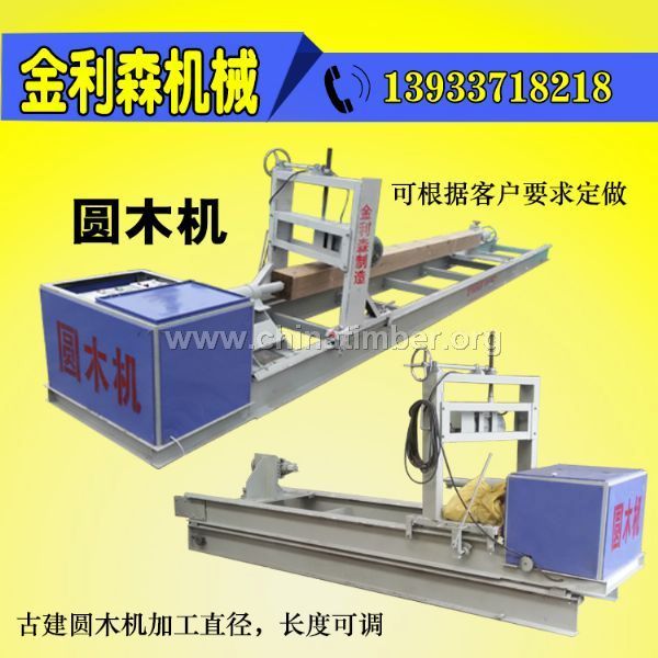 圆木机床主要用于加工古建筑亭子、瓦房房梁、俄罗斯木屋、蒙古包、圆柱、檩条、椽子等各种装修所用的不同直径的圆木刨圆、找圆等。