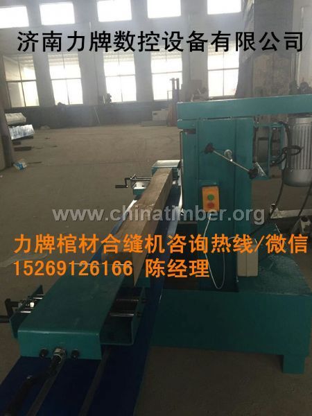 河北柏木棺材合缝机精工智造 专业品质 济南力牌数控设备有限公司网站:www.lp1325.com 力牌LP-30棺材合缝机 济南力牌数控有限公司研发的棺材拼缝合缝机主要针对棺材板、棺材盖、棺材板合缝拼缝使用。精密刨铣,20度角度调整,使加工出的产品严丝合缝,滴水不漏。适用于加工各种柏木、松木、密度板、刨花板、人造板、ABS板、PVC板、有机玻璃板及实木等木质结构,硬度相似的板材。棺材雕刻加工不可缺少的设备。 河北柏木棺材合缝机设备性能特点:济南力牌数控设备有限公司专业生产棺材合缝机,合缝刨,优质高强度铝合金推台,进口高精度导轨,可加工400宽的木材,并可倾斜20度的角度,是棺材拼缝的好帮手。合缝锯采用直径500的锯片,大功率电机,3000* 375mm宽的推台,可倾斜45度的角度,切割面光滑而且直线度高,是棺材制作的高效设备。 名称 棺材合缝机 型号 LP-30 刨刀宽 400mm 加工长度 26000mm 加工宽度 500mm 电压 380v 功率 4000w 机器尺寸 3100*1200*1500 设备技术参数: 刨刀宽400毫米,导轨长3.米*320毫米宽,可加工2.6米的板材,380V4千瓦电机,红外线直线对斜