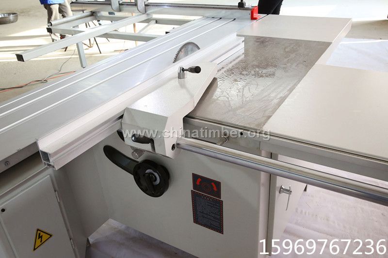 45度机器:切割角度可以调节,锯片可以倾斜,能切割45度斜角,也能切割直角,是两用的机器。用于板式家具。老板可以根据自己的需要选择型号,推台长度分别为2.8米,3米,3.2米。有效切割长度减十公分