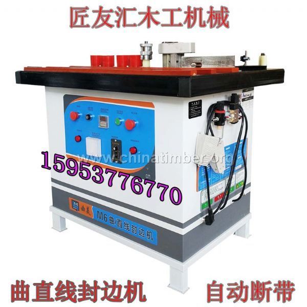 手动式更适合中小家具厂使用,且价格低,操作方便,易于维修,现在市场销售的产品有意大利、日本、台湾和中国内地市场的机器,按其制造原理分为两类:即上胶罐式和下胶灌式,前者传动由上向下,胶罐在上,后者传动由下向上,胶罐在下。前者好于后者,其特点为:1、不漏胶。下胶罐由于传动原因,密封圈损坏后就会造成漏胶,影响机器正常运行。上胶罐不存在漏胶问题。2、溶胶不老化。下胶罐存在残胶多次加温老化影响粘接质量问题,上胶罐中溶胶自上而下渗出,没有沉淀和残留。3、易于清洗。机器的定期清洗,上胶罐比下胶罐方便,甚至可以不停机清洗,不影响生产。4、故障少。上传动齿轮加油方便,减少故障。采用无极变速电机,给客户使用机器带来很多便利。 曲直线封边机技术参数:封边带厚度:0.3-3mm封边带厚度:10-48mm适合的热溶胶:溶点130-180以下的中低温热熔胶适合工件边框:弄与热溶胶粘合的木板、刨花板、中纤板、微粒板等各种板材边框。边框形状:直线、曲线、外弧、內弧及圆周(弧半径20mm以上)边框长度