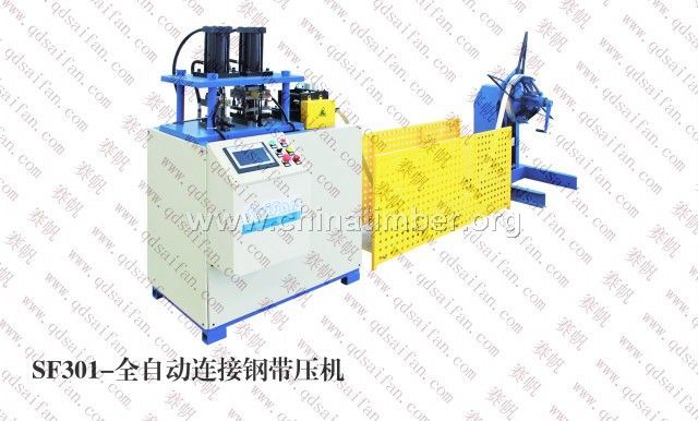 SF301全自动连接钢带压机 效率:2000M/8H 功率:3KW 操作系统:西门子触摸控制系统 加工尺寸:55/50*0.4MM