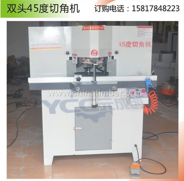 产品说明:LJ-355双头切角机主轴高速运转,同时锯切两个45度角.锯切角度准,材料切割面平滑无毛刺,无需二次加工.高效率,是一般单头机的几倍的产量.适合于推开门窗框、铝相框、镜框、展示柜、空调出风口、灯箱、屏风、饰条、铝封边、橱柜、灯具、画框等进行45度切角。操作方便简单,工作效率高,切割角度准,省人工,操作方便.是铝材、木材45度斜角加工的首选设备。