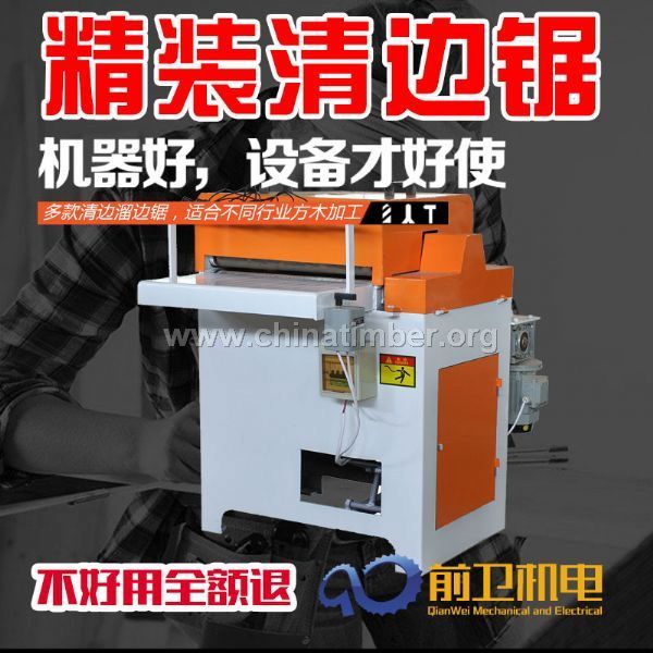 溜边锯 设备性能 此多片锯用于对自然宽木板进行修边、规格分片等。可对边修切,也可规格分片。规格多、送料速度快、修切精度高。结构简单,性能稳定,隔套加大,锯片无晃动,可多人操作,送料速度更快。产品具有送料顺畅、加工精细、不烧锯片、高工效,低耗材、环保、安全性强等优点,适用于干料和湿料加工,是各种板材加工成型的理想设备。产品适用于杉木、松木、按木、杨木等较软杂木。是做指接板,细木工板,柜子板,床板,建筑家具木方等最理想的设备。 此多片锯主要用于对自然宽木板进行修边、规格分片等。可对边修切,也可中分成规格分片。规格多、履带传动,修切精度高,可多人操作,送料速度更快。安全、高效、稳定。[设备参数] 型 号 MGJL2.5*50Z 进料长度(cm) 40-100 进 料 宽 度(cm) 43 进料厚度(cm) 0.5-2.5 锯片电机功率(kw) 4 送料速度(m/min) 0-12 送料电机功率(kw) 4P-0.55 主轴直径(mm) 40 主轴轴承型号 UCFC206 夹套规格(mm) 70*40 锯片规格(mm) 150*(1.6~2.2)*40*24T 工作台长度(cm) 前40后30 外形尺寸(cm) 120*80*100 整机重量(k) 250 备 注 以上设备可根据客户要求定制定做机型。 [售后服务] 机器在款到后7个工作日内发货!公司派专业人员前去免费安装调试,教现场工作人员和技术工如何正确安全的使用机器,机器主要零部件(主轴,电机)免费保修一年,注电机挡膛损坏不保修(人为操作不当引起的),其它易损件保修三个月。 备注:可根据客户需要定制