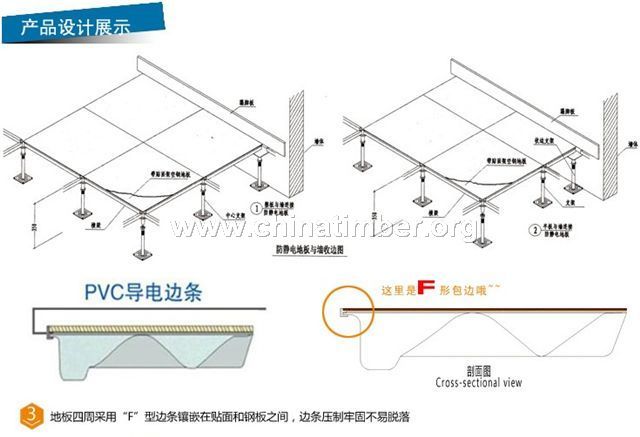 全钢高架防静电地板采用上海宝钢集团优质合金冷轧钢板,经拉伸后点焊成形。外表经磷化后进行喷塑处理,内腔填充发泡水泥,上表面粘贴高耐磨麻面防静电三聚氢胺贴面(HPL)或PVC贴面,四周镶嵌导电边条。