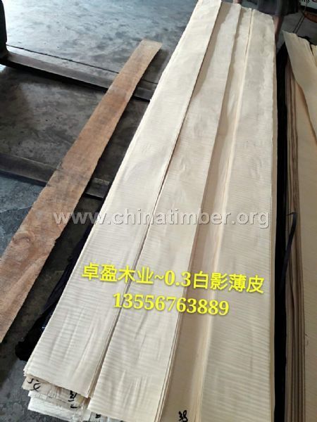比较特殊和珍贵,属于中、高档木皮,它的基本缺陷等同于安利格木皮。在质量评估时着重看影的分布、强弱和长度,另外是纹理和颜色,目前市场上流行直纹和浅色,需求量比起别的特殊木种要大。木纹交错,有时有波状纹理,在四开锯法加工的木材纹理处形成独特的鱼卵形黑色斑纹;疏松度中等,光泽度高;边材淡黄色,