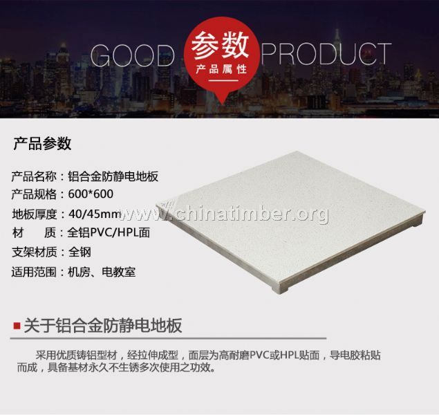 采用铝合金,经压铸成形。外表经磷化后进行喷塑处理,上表面粘贴高耐磨麻面防静电贴面(HPL)或PVC贴面。
