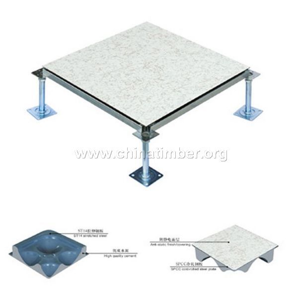 是采用高耐磨的三聚氰胺HPL防火板或PVC作为面层(北方地区由于气候干燥,不易使用HPL防火板贴面),钢壳结构基材,另外根据有无黑色胶条还有无边和有边之分。 一般的工程商选择非标型(导静电性和承载等方面都难达到要求),因为价格低。要求高点的采用国标型。 全钢地板的优点是施工方便,安装后也不会存在缝隙问题,更换方便,缺点是面层材料不耐磨、寿命短,容易起皮翘角,过几年就要更换。 3、铝合金型防静电地板 产品采用优质铸铝型材,经拉伸成型,面层为高耐磨PVC或HPL贴面,导电胶粘贴而成,具备基材永久不生锈多次使用之功效,从而有效解决了复合地板及全钢地板的产品缺陷,而量身定做的高档防静电地板,但其造价太高。 【产品介绍】 全钢防静电地板选用足够厚度的优质钢板,在冲压和焊接后(64个焊点)进行整形处理,并以高强度发泡水泥填充,使得全钢活动地板的边角坚硬无比,大大加强地板边沿的承载能力和足够的平整度及装饰性。 【产品概述】 全钢防静电活动地板采用上海宝钢集团优质合金冷轧钢板,经拉伸后点焊成形。外表经磷化后进行喷塑处理,内腔填充发泡水泥,上表面粘贴高耐磨麻面防静电三聚氢胺贴面(HPL)或PVC贴面,四周镶嵌导电边条。 【主要技术指标】 防静电电性能:系统电阻10的6次方—10的9次方欧姆 标准地板: 600×600×35mm 均布载荷: 1000KG 极限集中载荷:400KG 防火性能:国家B级防火材料 耐 磨 性 :0.1g/1000转 地板贴面厚度:1.5mm(三聚氰胺材料) 地板钢板厚度:上钢板0.8mm、下钢板0.7mm 【系统组装】 系统组装由地板、横梁、支座组成。横梁和自身高度可调的支座用螺钉连结成稳固的下部支承系统,地板镶嵌入桁梁围成的方格内 产品应用: 广泛应用于计算机中心、通讯中心、数据中心、广播电视发射中心、电力控制调度中心,微波通信站、卫星地面站、移动通信、程控电话交换、电台电视台编辑控制等各类专业机房,集成电路等计算机、通讯、电子、光学设备生产车间,医院手术室、麻醉室、电子影像检查室及其他对静电敏感的军工、石化等易燃易爆场所和文化娱乐中心、星级酒店、智能化写字楼等。