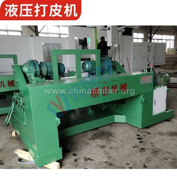6、工作只需轻轻操作液压手阀即可把树木去皮滚圆,一台打皮机可供两台旋切机用料.