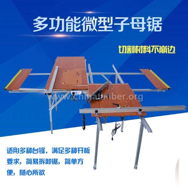新款子母推台锯可实现锯片斜切,不使用时有锯口盖板,简单方便,使用便捷。 1.采用1.8厘米生态木+0.5厘米电木 2.采用1厘米全厚电木,绝缘防水不变形 3.横截、竖切快速切换,效率更高 4.方便耐用,木工工作好帮手