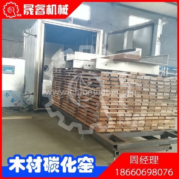 碳化木材具有防腐防虫功能,使用寿命延长,使用性能大大提高,如吸水性、吸湿膨胀性下降,尺寸稳定性提高,其制品几乎不变形、不开裂,特别适用于制造地板、门、窗扥产品。使用碳化罐碳化后的木材表面呈现浅棕色至深褐色,颜色均匀柔和,色差较天然木材小,保持时间长,且表面光滑。可部分替代珍贵阔叶树材,用于制造室内外家具。