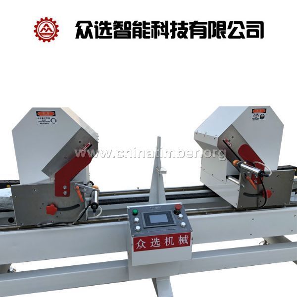 双端切角锯 设备用途: 1、门线条切割可切割45°、90°,也可加工门边断料定尺。 2 、采用精密导轨和丝杆传动,运行平稳,加工精度高。 3、结构紧凑合理,操作简单方便。