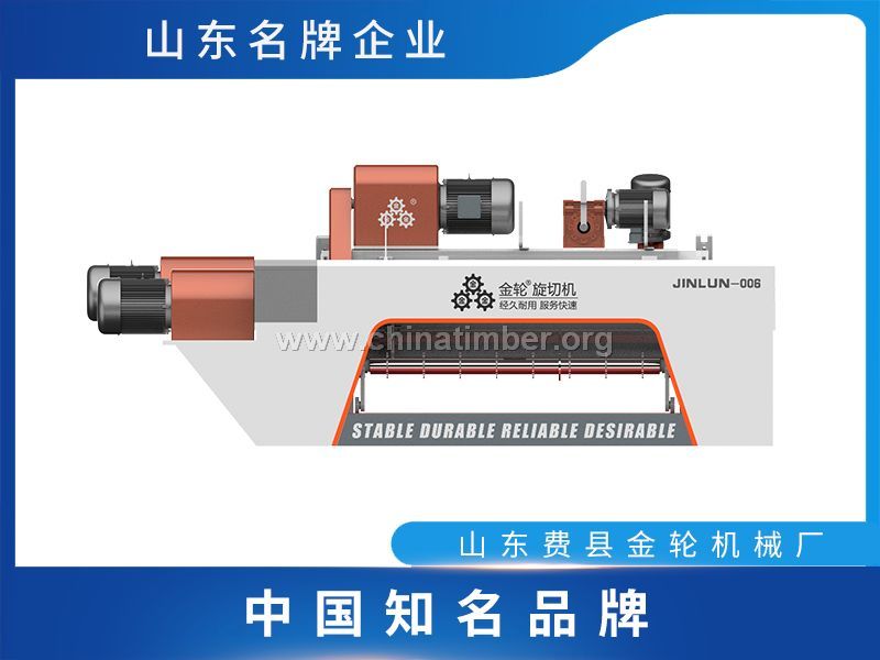 4、利用大齿轮曲线进给,进刀方式,使木皮在正常旋切情况下均匀度误差在0.1mm左右。在木材不圆时可旋切厚板,在小直径时可迅速转变为薄板,而且不会断刀。