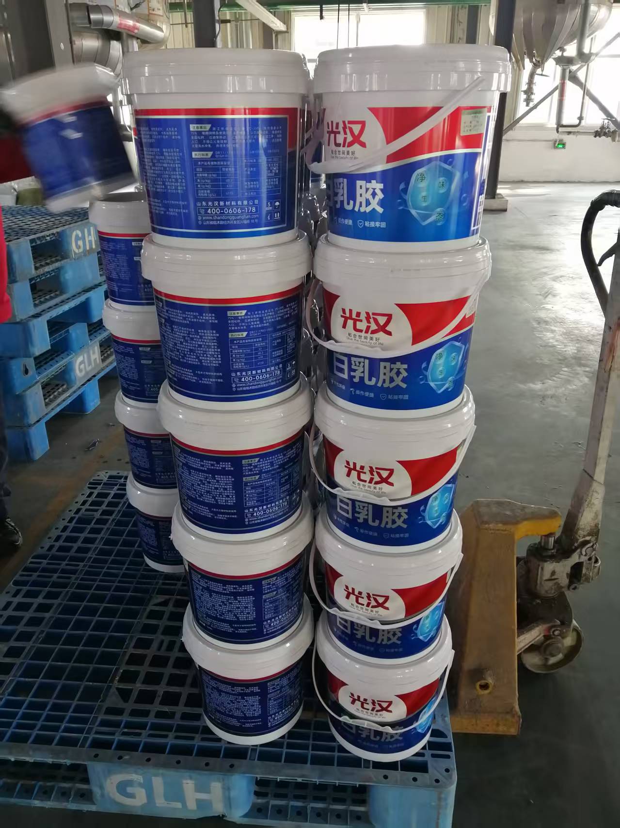滨州白乳胶生产厂家、滨州环保白乳胶生产厂家、滨州木工胶白乳胶生产厂家、滨州压板胶白乳胶生产厂家、滨州木皮胶白乳胶生产厂家、滨州拼板胶白乳胶生产厂家生产的山东光汉白乳胶木工白乳胶压板白乳胶木皮胶白乳胶拼板胶白乳胶组装胶强度高、粘稠适度、初粘性能好、无添加,广泛适用于家庭装饰装修、墙地面装饰美术装潢,木制品加工等领域,亦适用于书本、纤维织物、皮革等多孔材料的粘接,尤其适用于纸袋、装饰板材、石膏造型的粘接和墙面批刮。